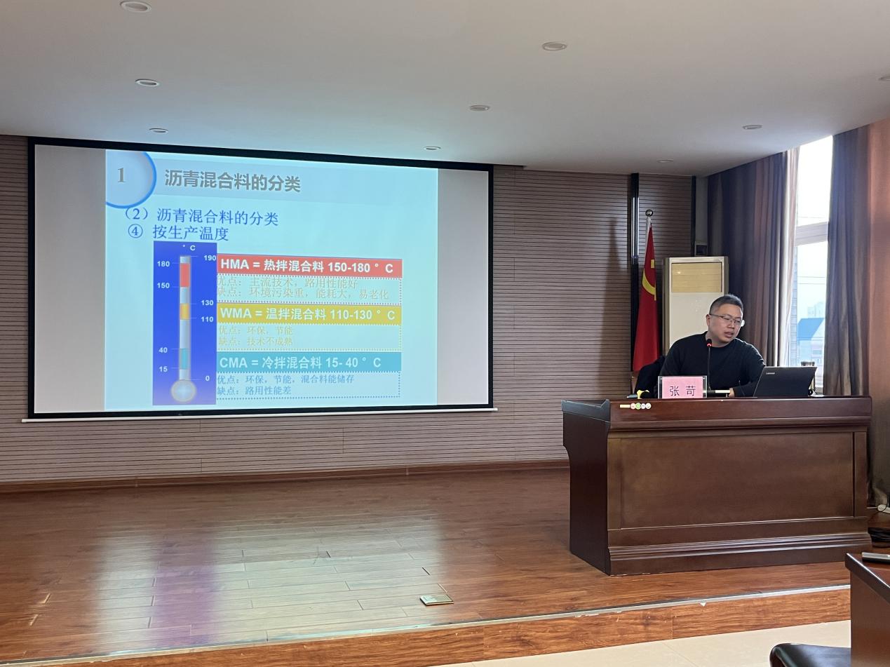 本次培训特邀阜阳师范大学工程造价教研室主任张苛、安徽省循环经济研究院循环经济产业研发中心主任李国涛现场授课,培训内容包括沥青混合料及沥青路面发展趋势、质量控制及项目管理等方面,在授课老师的带动下,课堂氛围轻松活跃,大家学习情绪高涨,课后进行了交流讨论,达到了预期的培训效果。