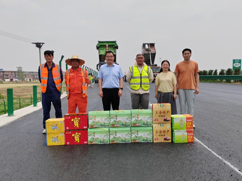 在2025年端午节来临之际,安徽茂诚路桥工程有限公司于5月27日组织开展了“情暖端午,关爱一线”节日慰问活动。公司总经理田明坤带队,前往各拌和站及沥青施工项目部为坚守岗位的一线员工送去节日的问候与关怀,并送上粽子、咸鸭蛋等慰问品,让员工们切实感受到公司的温暖与节日氛围。