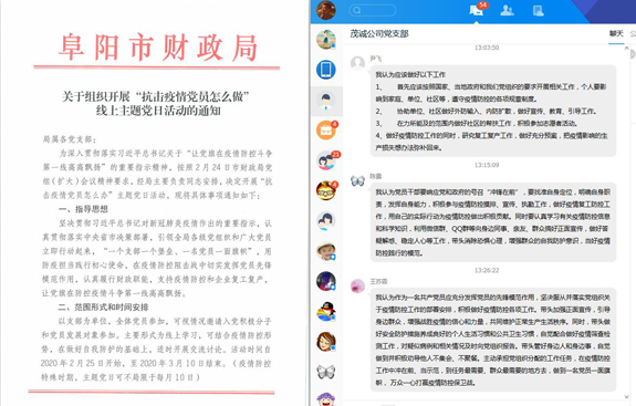 为深入贯彻落实习近平总书记关于“让党旗在疫情防控斗争第一线高高飘扬”的重要指示精神,3月9日,安徽茂诚路桥工程有限公司党支部组织开展3月份主题党日活动暨“抗击疫情党员怎么做”线上交流讨论。