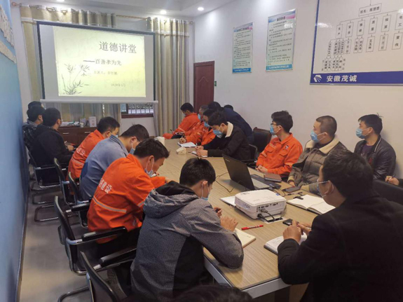 2020年4月24日,插花拌合站开展以“百善孝为先”为主题的道德讲堂活动。拌合站全体职工参加了此次活动。活动围绕“自我反省、学模范(讲故事)、诵经典、发善心、敬道德”五个环节展开。