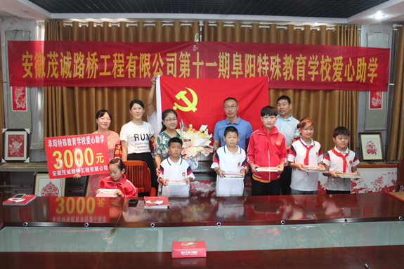 此次爱心助学活动,安徽茂诚路桥公司对6名贫困残疾学生进行了帮扶,公司捐赠爱心助学金3000元,帮助他们减轻家庭负担。截止2020年9月,茂诚公司已连续6年开展十一期对该校爱心助学活动,合计资助贫困残疾学生60余人次。