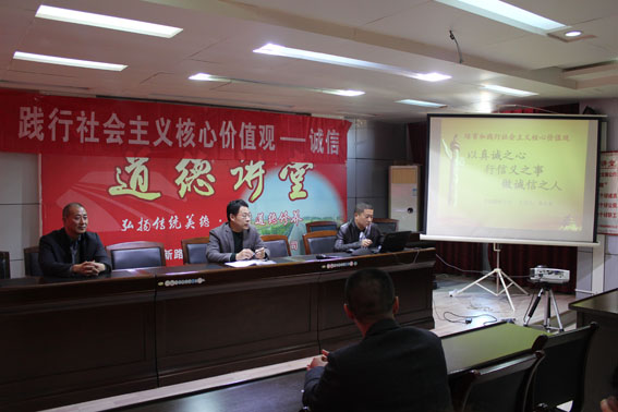 为进一步提高员工道德素养,树立诚信价值观,2016年11月4日,公司工会在五楼会议室举办了以“践行社会主义核心价值观—诚信”为主题的道德讲堂活动。本期道德讲堂由茂诚公司陈东东主讲,公司总经理韩恒忠、工会主席冯贺及公司所有管理人员参加了此次活动。