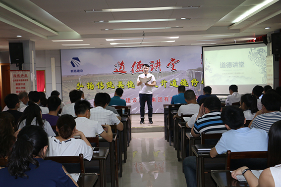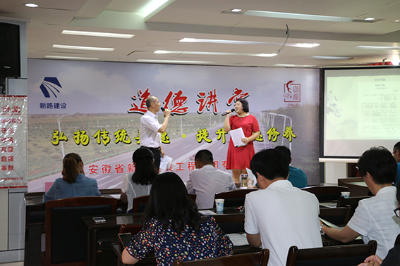 5月22日下午,安徽省mansion88明升建设工程集团有限责任公司工会在五楼会议室举办了以“孝和中国”为主题的道德讲堂活动。本期道德讲堂由集团子公司茂诚路桥公司方智勇同志主讲,特邀阜阳市文明办赵主任、开发区文明办领导及开发区文明单位代表参加,集团公司领导班子及公司所有管理人员齐聚一堂,共同接受了一场道德洗礼。