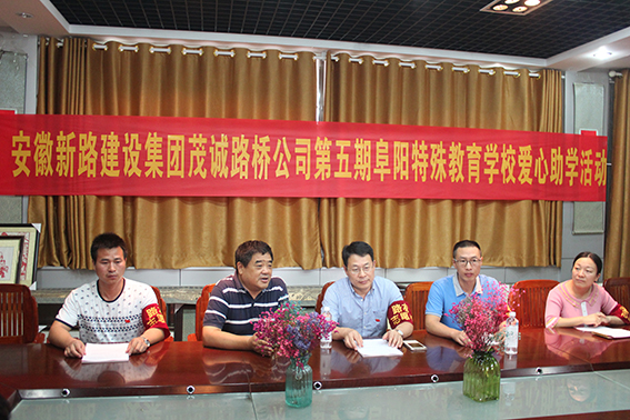 扶贫济困是中华民族传统美德,友善互助是新时期的社会主义核心价值观。2017年9月21日,安徽mansion88明升集团公司总经理韩恒忠、安徽茂诚路桥公司经理尹飞等人再赴阜阳市特殊教育学校,继续帮扶这些聋哑、失明、智障、自闭的特殊儿童,为他们送去了爱心助学金及学习用品。
