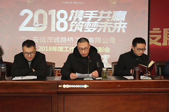 2月3日,安徽茂诚路桥工程有限公司顺利召开了2018年度工作会议暨表彰大会,公司全体职工参加了本次会议。