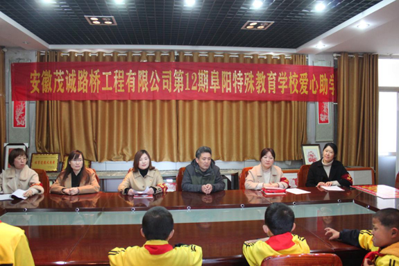 扶贫济困是中华民族传统美德,友善互助是新时期的社会主义核心价值观。2021年3月24日,安徽茂诚路桥公司副经理董娟带队再赴阜阳市特殊教育学校,继续帮扶这些聋哑、失明、智障、自闭的特殊儿童,为他们送去了爱心助学金及学习用品。