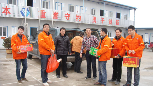 2月4日至5日公司副总王壮飞、工会主席冯贺一行分别到S102西湖-临泉段项目部、S202阜南段项目部、S202颍泉段项目部、茨淮新河大桥项目部、合肥工业园区项目部、学苑路项目部等在建项目慰问,关心和慰问春节坚守在一线的岗位职工,并祝福他们平安幸福过上一个健康的新春佳节。