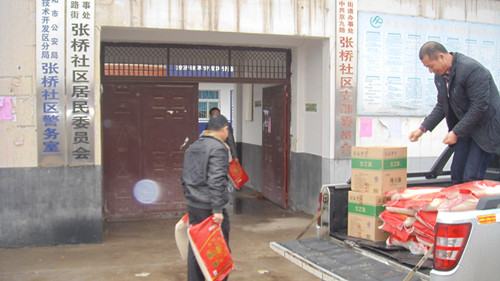 公司工会主席冯贺、资产租赁公司经理尹飞一行到张桥社区慰问,感谢社区群众对我们公司一年来工作的支持,祝福社区群众过上一个幸福和谐的新春佳节。