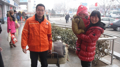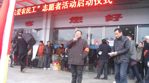 2月18日公司副总袁利民带领公司“路友”志愿者参加区文明办在长途汽车中心站举行的关爱农民工春运服务活动启动仪式,并在活动启动仪式做志愿者关爱农民工春运服务活动的讲话,随后组织志愿者举行爱心捐款。在长途汽车中心站工作人员分配下“路友”志愿者在售票口处维护秩序、为农民工引导车次、帮扶拿行礼、等爱心活动。