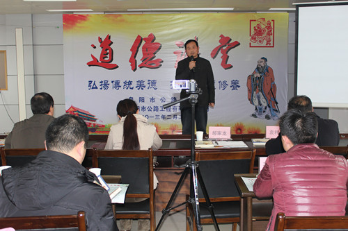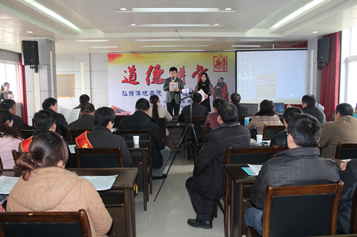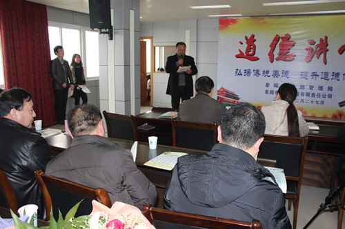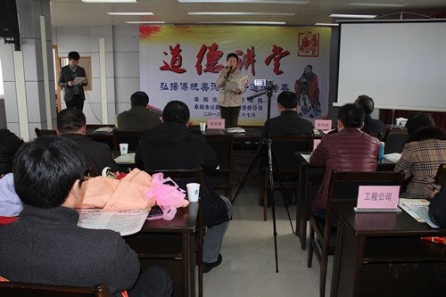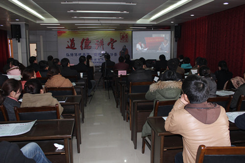 2013年2月27日下午,在公司五楼举办了“道德讲堂”活动,并邀请市直工委领导张向军、开发区文明办领导郝家龙及相关文明单位领导参加了本次活动,活动以学习中华优秀道德传统文化为主线,旨在促进身心和谐、家庭和谐、社会和谐。