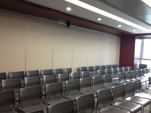 此处为中型的会议室,最后的白色背景系折叠移门,人多时可改成大型会议室。