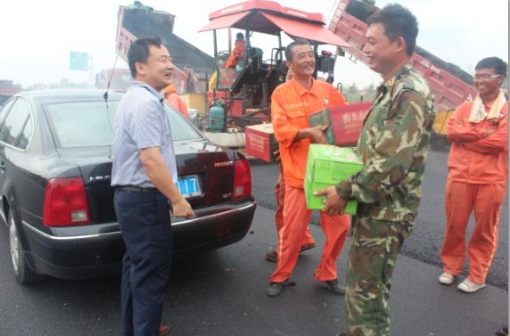 茂诚公司在检查中还开展了“送清凉”活动,对户外工作人员相对集中的工地、拌和站等走访慰问,送上防暑降温用品。