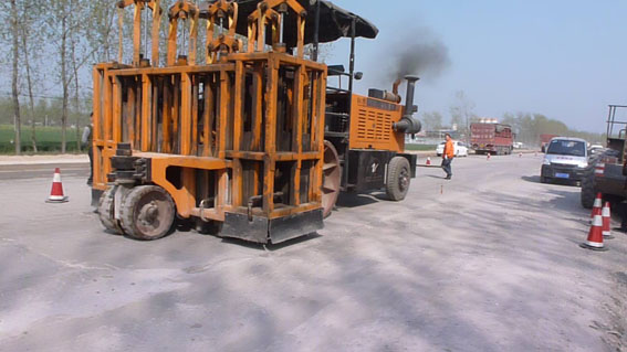 该工艺是采用多锤头碎石化机,击碎原水泥混凝土路面,碾压后作为路面底基层,在我公司是首次使用。李总向项目部技术人员详细说明了碎石化的施工原理及注意事项,并要求收集原始数据,形成试验段总结报告,以指导后续施工。