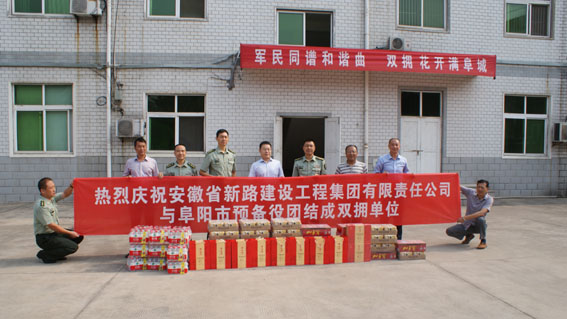在“八一”建军节到来之际,7月29日集团总经理韩恒忠、副总经理袁利民、工会主席冯贺一行前往阜阳市预备役团进行拥军慰问活动,为官兵们送去茶叶、饮品、矿泉水等慰问品,双方进行亲切座谈,为人民子弟兵送去了诚挚的节日祝福,受到全体官兵的热烈欢迎。