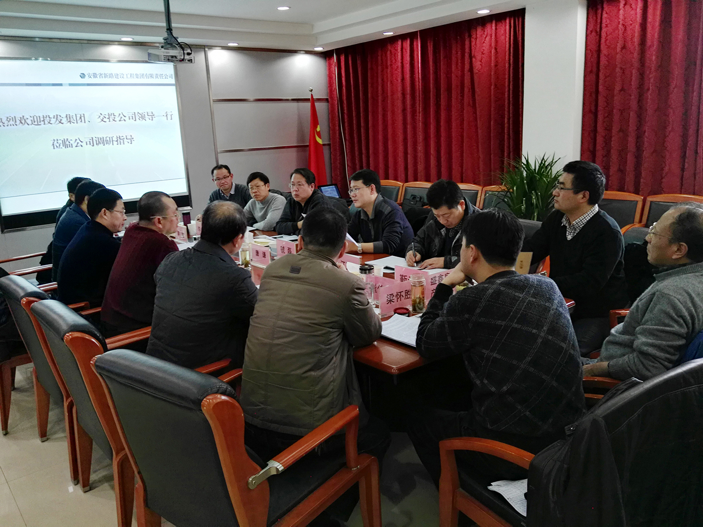12月25日上午,阜阳投发集团总经理、交投公司董事长兼总经理虢磊同志一行6位领导,来集团公司进行工作调研。集团公司董事长唐谦同志带领领导班子成员参加了本次调研会。