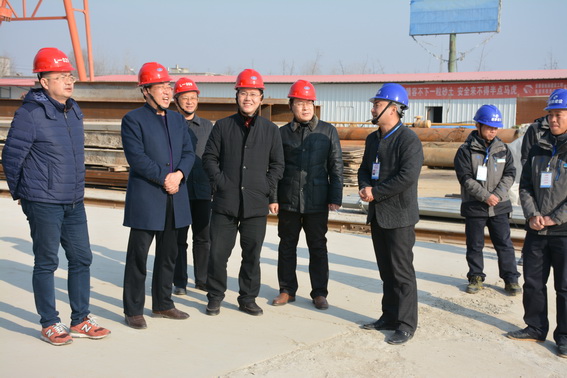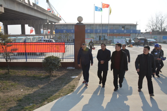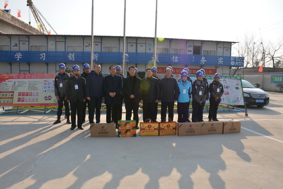 2017年1月23日,在春节来临之际,阜阳市投资发展集团公司董事长王刚及阜阳市投资发展集团公司总经理、阜阳交投公司董事长兼总经理虢磊在mansion88明升集团公司董事长唐谦和总经理韩恒忠的陪同下前往集团公司G105南照大桥项目部节日慰问。