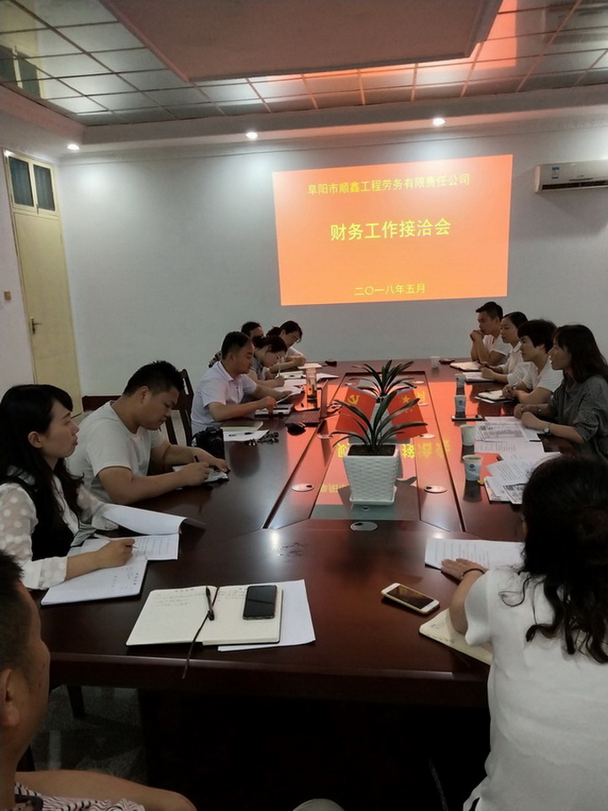 为将子公司财务日常工作管理的更加规范,2018年5月16日下午,财务中心主任王萌带领各科室成员到顺鑫劳务公司进行财务工作接洽,本次会议由顺鑫劳务公司经理王如宝主持,顺鑫公司全体人员参加了本次会议。