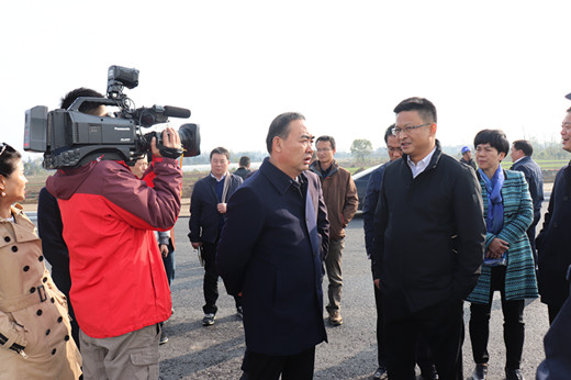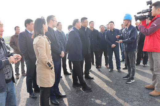 2018年11月8日下午,阜阳市委副书记、市长孙正东莅临一道河路西延建设工程进行了实地视察和指导。阜阳市城南新区建设管理委员会主任、颍州西湖省级湿地自然保护区管理局局长束浩然、集团公司总经理韩恒忠陪同。
