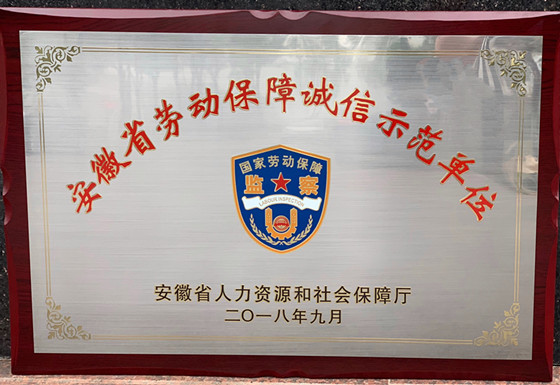 近日,集团公司荣获2018年“安徽省劳动保障诚信示范单位”称号,多年来集团公司一直严格遵守国家劳动保障的各项法律法规及政府部门的相关规章制度,坚持以人为本和谐发展,始终把劳动者的权益放在首位。此次被评为“安徽省劳动保障诚信示范单位”,将珍惜荣誉,立足当下,再接再厉,持续发挥示范引领作用,积极构建和谐稳定劳动关系,继续加强合法用工意识,努力提高劳动保障水平,不断营造守法诚信氛围,促进单位平稳健康快速发展。