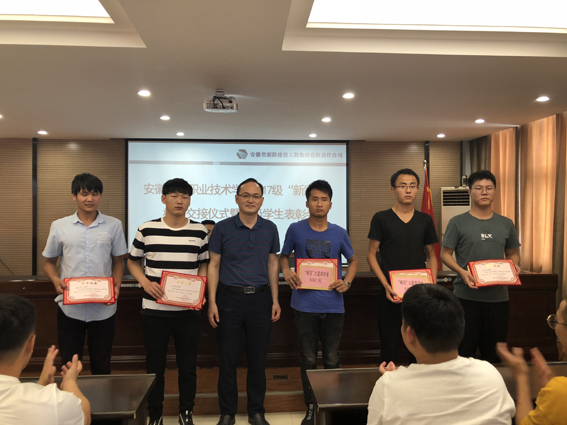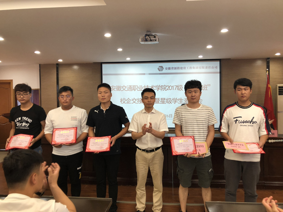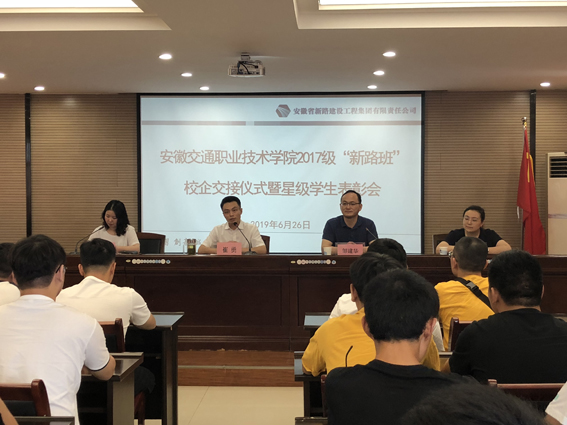 2019年6月26日,集团公司在五楼会议室举行了安徽交通职业技术学院2017级mansion88明升班校企交接仪式暨星级学生表彰会。会议由集团公司人力资源部部长魏静主持,集团副总经理崔勇、安交院土木工程系党支书记邹建华携mansion88明升班共40余名师生出席了会议。