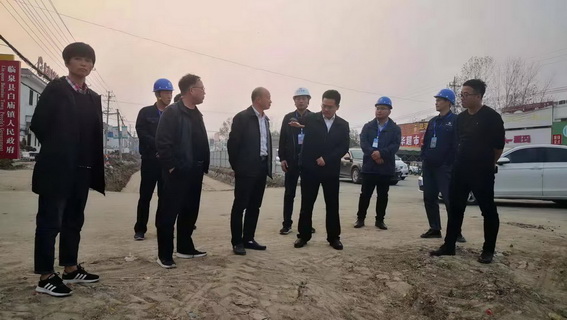 2019年11月7日,临泉县县委常委、常务副县长刘峰一行在县重点工程服务中心谢尚杰局长的陪同下,来到G345项目现场协调项目征迁工作。沿线地方政府、项目办、项目部负责人陪同。