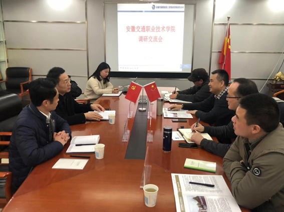2019年12月19日下午,安徽交通职业技术学院党委书记孙顺利带队莅临我公司,开展关于深化校企合作专题调研。集团公司总经理韩恒忠、副总经理崔勇、人力资源部部长魏静出席调研交流会议。