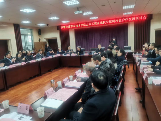 2019年12月26日,安徽交通职业技术学院组织召开土木工程系现代学徒制校企合作交流研讨会。集团公司作为安交院校企合作单位受邀参会,集团公司总经理韩恒忠及人力资源部部长魏静代表出席。