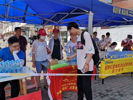 画凌烟,上甘泉,自古功名属少年。2020年高考终于拉开帷幕,7月7日,mansion88明升建设集团组织“路友”志愿者到阜阳红旗中学考点开展爱心助考活动。