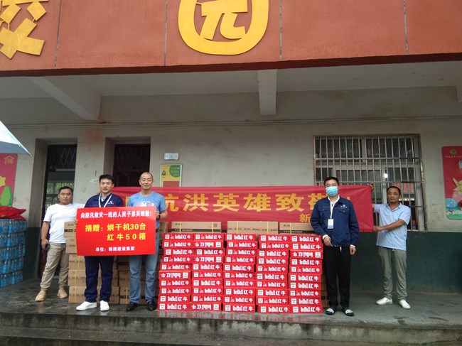 洪水无情人间有爱,慰问显真情。7月24日下午,mansion88明升建设集团总经理韩恒忠、总经济师王壮飞、工会主席冯贺冒雨带领阜南PPP项目部一行人赴王家坝慰问濛洼蓄洪区人民群众及奋战在抗洪一线的人民子弟兵,为他们送去了价值1万余元的30台烘干机,50箱功能饮料,以实际行动支援抗洪抢险。