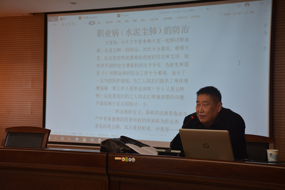 本次讲座由美年大健康特聘内科主治医师李杰主讲。讲座上,针对疫情防范,李杰提出了口罩的正确使用方法和室内外个人注意事项及防护措施。针对建筑行业和本单位施工生产特点,李杰深入浅出地为大家讲解了水泥尘肺等职业病的防治方法。讲座内容丰富,解读专业,具有很强的针对性、实用性和可操作性。