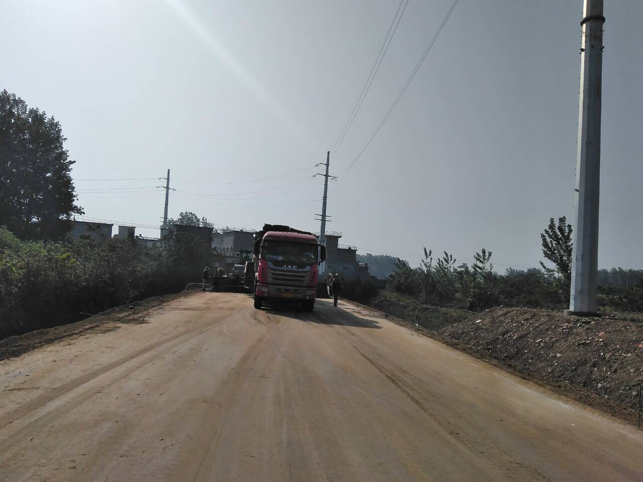在摊铺施工过程中,工程科和实验室人员不断的对新铺路段的标高、压实度、平整度、厚度等各项指标进行了检测,均符合规范及设计要求,检测数据及成果将作为下一步大面积路面施工的指导依据。