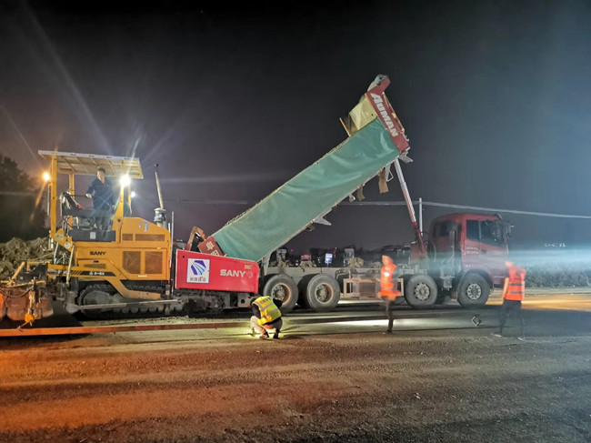 目标一旦确定,唯有奋斗才能实现。在决胜永兴路项目按期交工的同时,京九南路、贺胜西路、运河东路、黄马路等项目也在保证工期进度。项目部为了能够加快项目生产进度,与时间赛跑,统筹资源调配,采取多条道路多个工作面同时施工、24小时两班倒等抢工措施,见缝插针,人休机不停,保证施工进度。并通过每日在微信群、QQ群里进行公布施工进度、水稳出料、备料情况等工作完成情况,开展“争创青年文明号,争当青年岗位能手”活动等方式,营造创争氛围,提振士气。