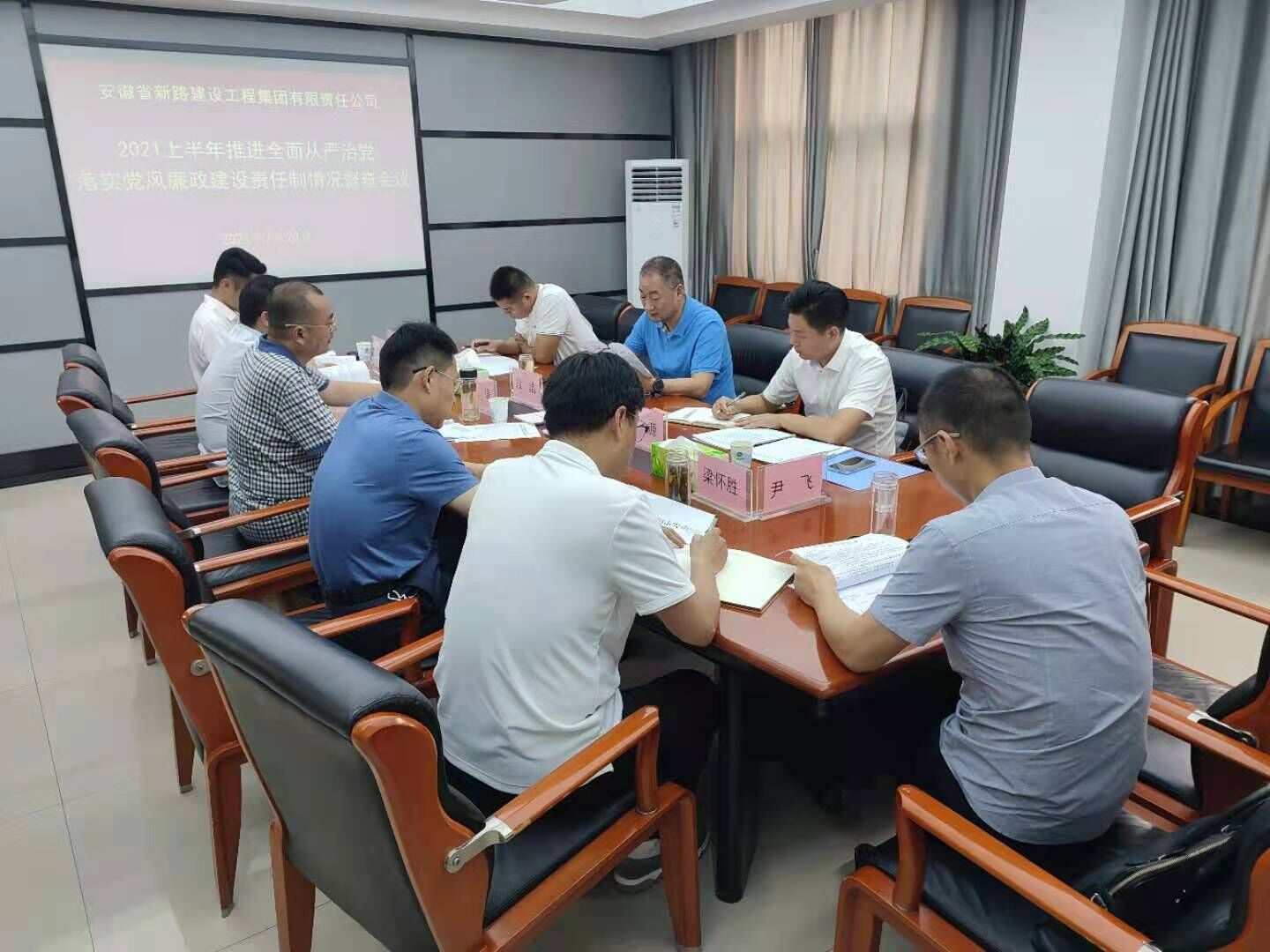 段浩指出并强调:一要加强落实党风廉政建设主体责任,切实在政治上增强“两个维护”的坚定性,重点对巡视巡查发现的问题,要立行扎实整改,不定期做好整改“回头看”,确保整改工作长期取得实效;二要贯彻落实党中央及安徽省委重大决策部署,进一步抓好党风廉政建设,切实履行好“一岗双责”,针对排查出的廉政风险点,要理清问题,明确责任,完善相关制度,抓好职责范围内党风廉政工作。三要严格落实中央八项规定精神及其实施细则,持续纠正“四风”问题,严肃工作作风,力诫形式主义、官僚主义;坚决抵制餐饮浪费,狠刹违规公款吃喝,要进一步进行自查自纠,严明纪律规矩,完善工作流程和内部控制制度,规范日常管理,确保中央八项规定及其实施细则精神落地实处;四要常态化抓好疫情防控,及时传达最新工作要求,坚持体温测量、人员车辆排查登记、环境消杀、物资储备等工作;五要抓好汛期防控工作,切实做好施工现场人员、车辆、机械设备等安全防控措施,并加强管理,确保安全生产。