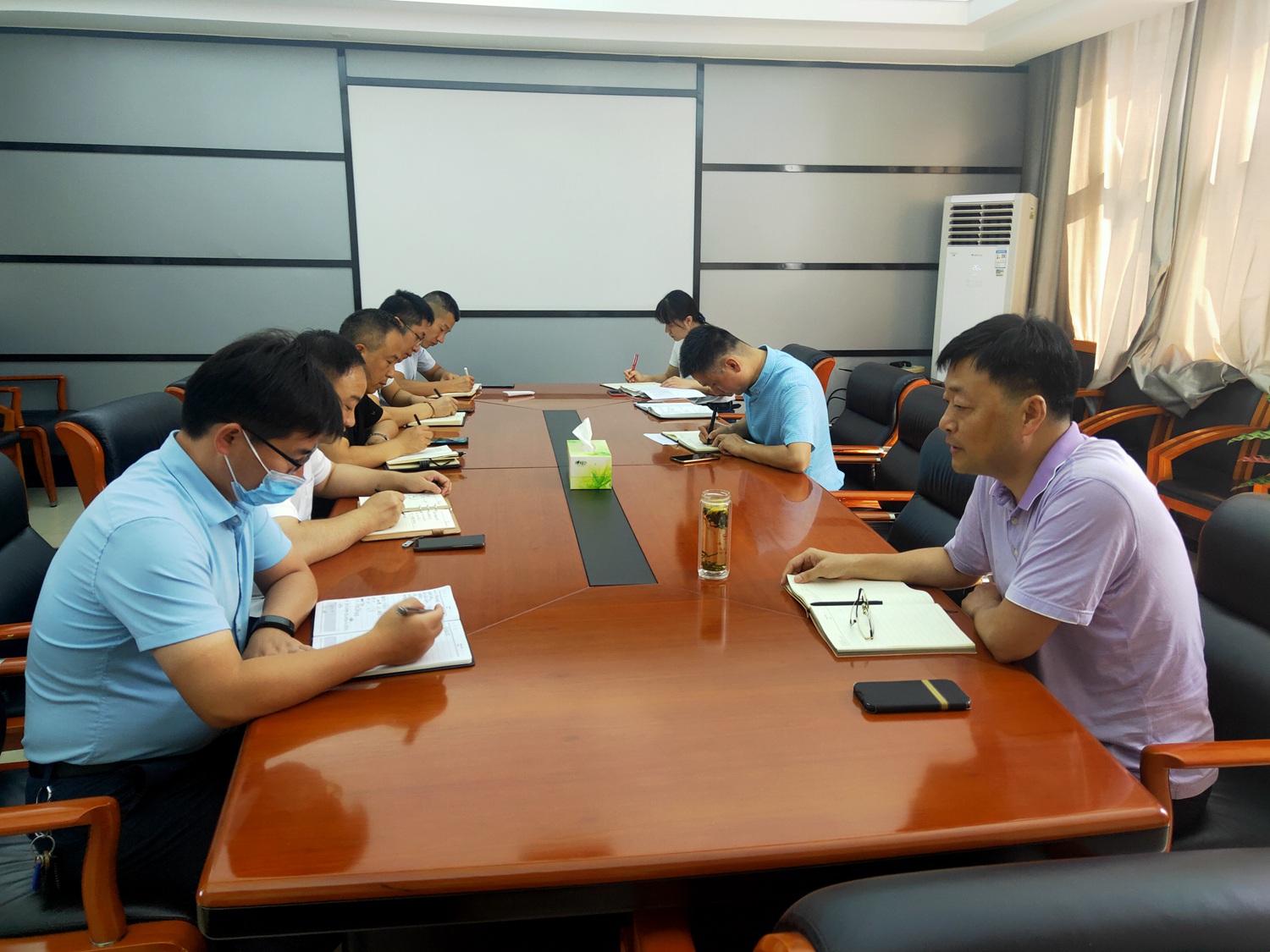 8月5日上午,总会计师梁怀胜主持召开在建项目重点工作督察会,项目管理中心、财务中心、审计监察部及阜南、颍州、颍泉、城南新区在建项目经理参加会议。