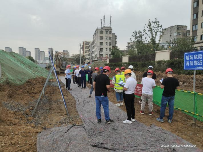 2021年9月24日临泉县2021年“质量月”观摩活动交流会在临泉县排水、灌溉等基础设施建设项目专项债一期工程(顺河街道改造及人民巷、如意巷道路新建)道排施工现场召开,会议由临泉县重点工程建设服务中心主办,李东元副主任主持,参会人员有临泉县重点建设服务服务中心各股室人员及安徽省mansion88明升建设工程集团有限公司、中铁五局、安徽恒桥公司、合肥路桥公司项目主要人员。