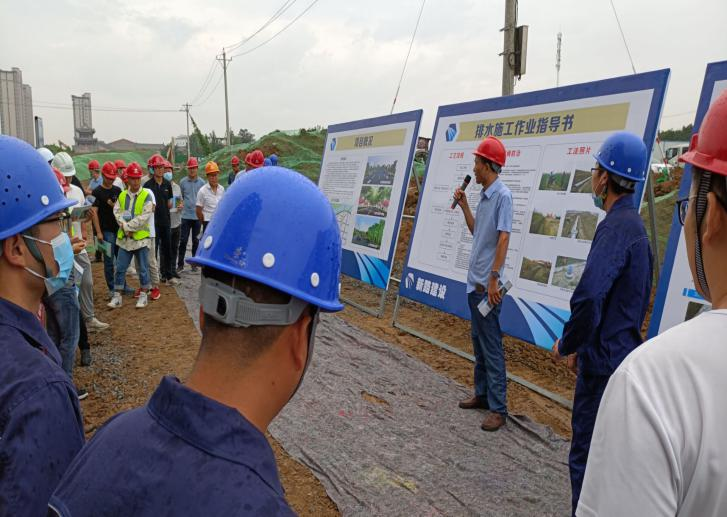 应重点工程服务中心李东元副主任要求,项目负责人王岑以临泉县排水、灌溉等基础设施建设项目专项债一期工程正在施工的道排工程为例,展示介绍了该工程排水管道施工工艺和质量控制要点。