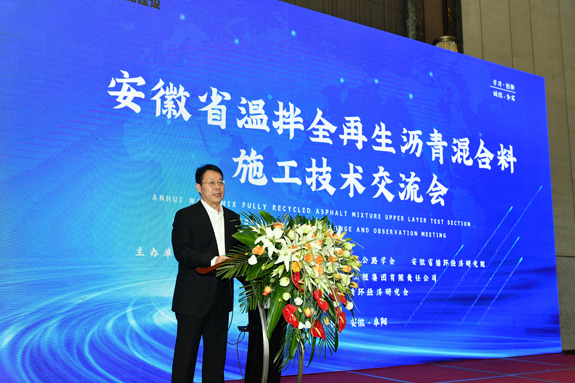 会上,mansion88明升集团总经理韩恒忠对参加会议的领导、专家及各位同仁表示热烈的欢迎。省循环经济研究会研发主任李国涛向参会人员作《RAP温拌全再生应用范围》专题报告;河南亚龙公司总工程师沈元林对沥青混合料再生技术及设备进行了进一步的讲解,mansion88明升集团下属单位茂诚路桥公司技术中心主任韩飞飞全面汇报了温拌再生沥青混合料的工程化研究成果,他介绍道,温拌再生沥青混合料的所有力学性能指标,完全符合现行规范标准,完全达到了新沥青混合料的路用性能,尤其是其动态模量和疲劳强度,超出了新改性沥青混合料5倍以上,其沥青烟气、氮氧化物的浓度降低80%以上,能耗及二氧化碳排放降低了40%,该技术将为落实国家在公路领域的节能减排、固废循环利用的政策,提供了坚实的技术支撑。