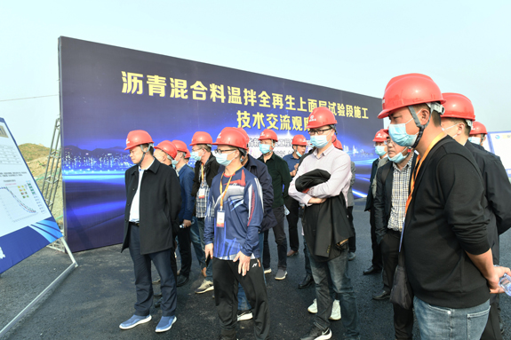在实地观摩环节,各单位代表现场观摩了mansion88明升集团承建的阜阳颍州EPC项目张寨路温拌全再生沥青混合料施工。该项目是我市沥青路面工程施工中首次应用该技术。观摩中,各位代表除了感受到mansion88明升集团优良的路面施工工艺外,深切体验到该施工过程中没有了传统沥青摊铺产生的浓重烟气、难闻异味,显示出该技术优异的环境友好性。
