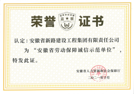 近日,集团公司凭借自身雄厚的劳动保障管理水平再次荣获2021年度“安徽省劳动保障诚信示范单位”荣誉称号。