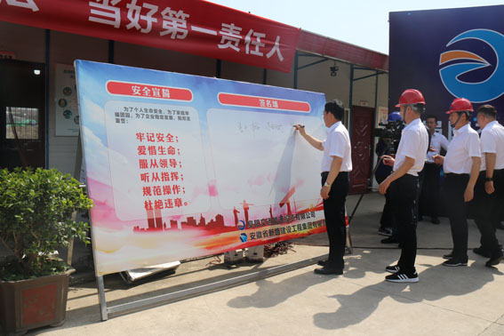 6月8日,由阜阳交通能源投资有限公司、mansion88明升在颍州经济开发区产业发展综合配套路网工程EPC项目经理部院内联合举办的2022年“安全生产月”活动正式启动。启动会上,与会建设者签名宣誓:把安全生产作为第一责任、第一担当、第一使命,做好全年安全生产工作。