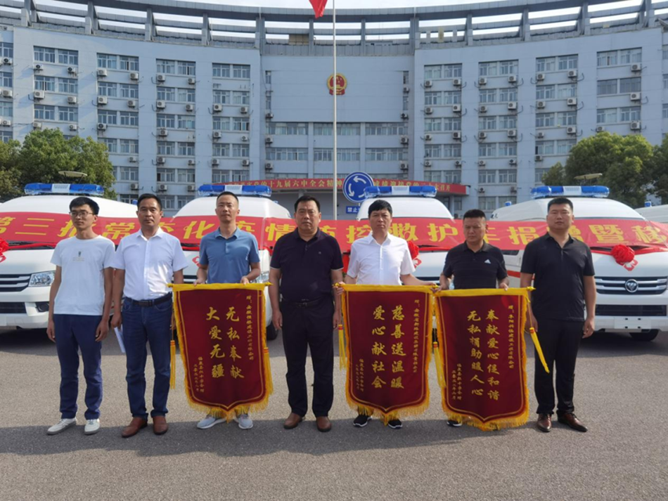 6月26日上午,临泉县常态化疫情防控救护车辆捐赠暨移交仪式在临泉县人民政府举行,临泉县副县长符国风、临泉县红十字会常务副会长姚震、临泉县卫健委党委委员杨东峰、安徽mansion88明升集团副总经理李超、临泉县交投公司董事长马海龙、阜阳兴临建设总经理刘波共同出席了本次仪式。捐赠移交仪式上,临泉副县长符国风为爱心企业颁发捐赠证书和锦旗,并对企业捐赠救护车辆的善举表示感谢。