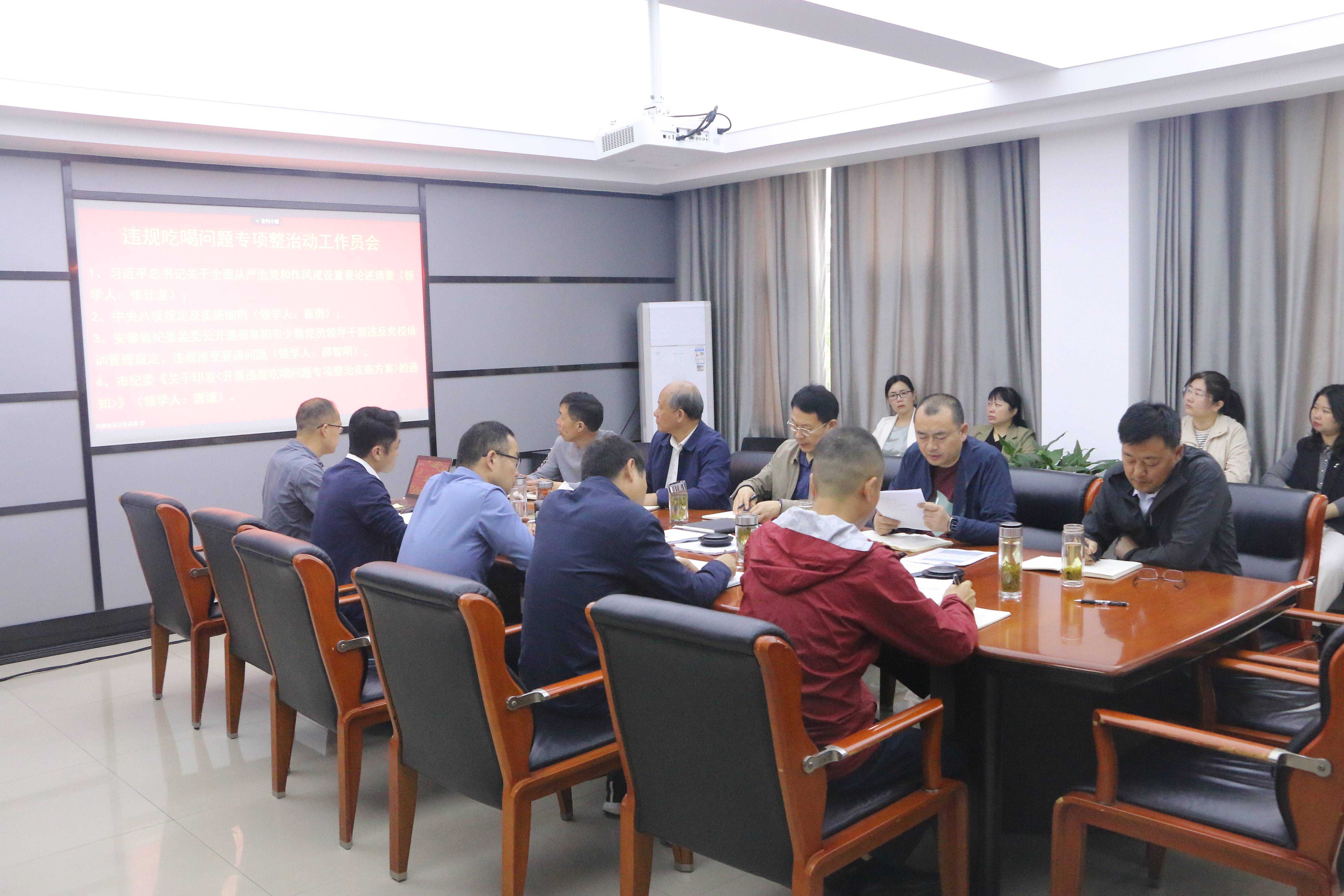 会上,深入学习习近平总书记关于全面从严治党、加强作风建设的重要论述,认真学习中央八项规定及实施细则,学习传达省纪委《通报》要求,党总支书记唐谦传达了阜阳市《开展违规吃喝问题专项整治实施方案》及交投公司会议精神。