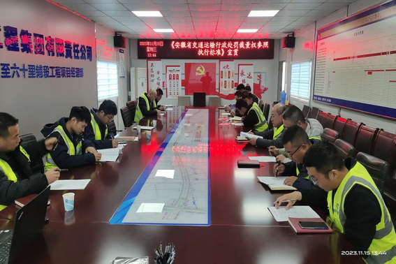 为规范项目管理行为,加强项目团队守法意识。11月15日中午,在425(原423)省道颍河至六十铺段工程项目部开展《安徽省交通运输行政处罚裁量权参照执行标准》宣贯学习和测试。本次宣贯学习由集团项目管理一部组织,安全部、正鑫公司及425项目部管理人员和劳务班组负责人参加了会议。