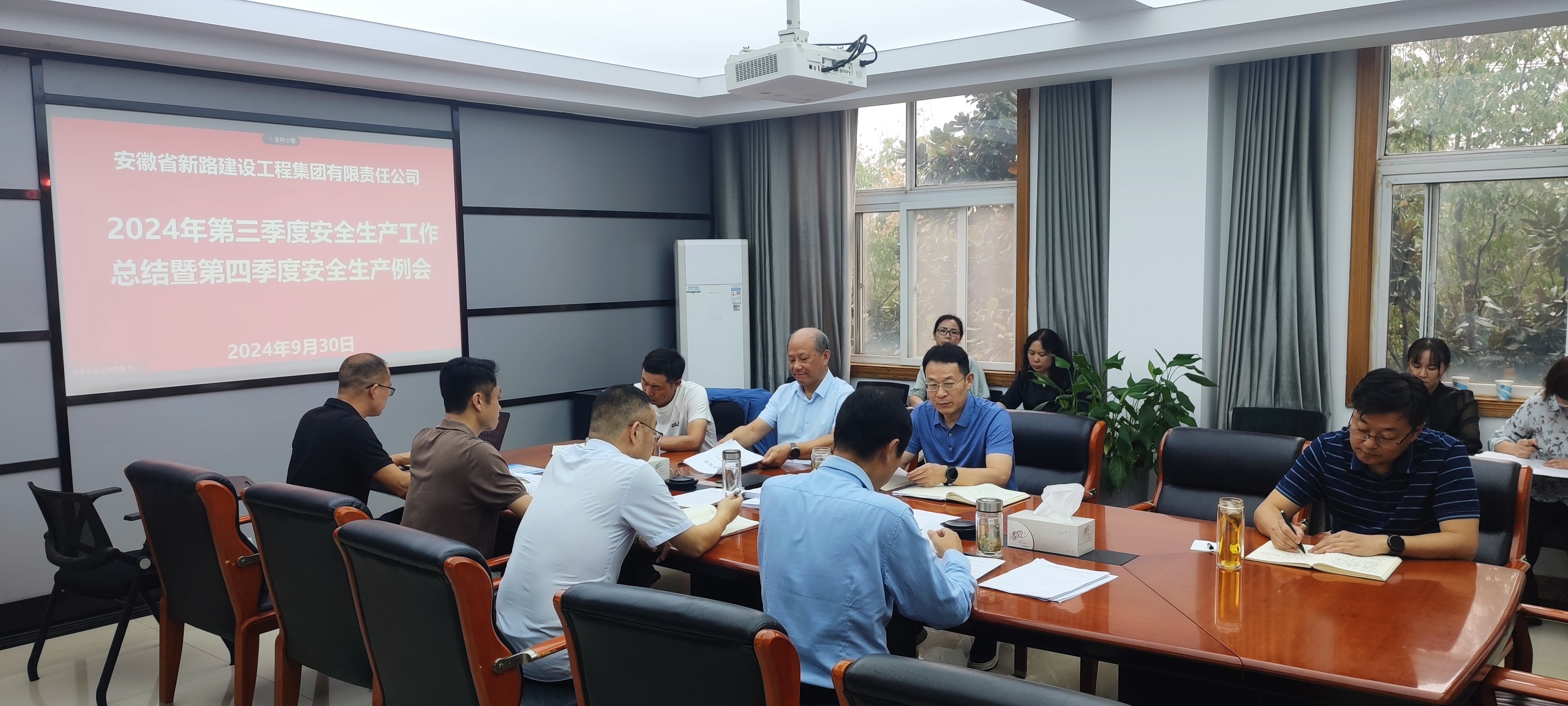 会议传达学习了安徽省安全生产委员会办公室《关于深刻汲取事故教训强化当前安全生产和中秋国庆安全防范工作的通知》(皖安办〔2024〕55 号)、安徽省交通运输综合执法监督局《关于印发‹安徽省公路水运工程建设“利剑2024”2号行动实施方案›的通知》(皖交执法函〔2024〕28 号)等文件精神,通报了三季度安全生产督查检查情况,全面总结了第三季度安全生产工作,并对四季度的安全生产工作进行了详细部署。