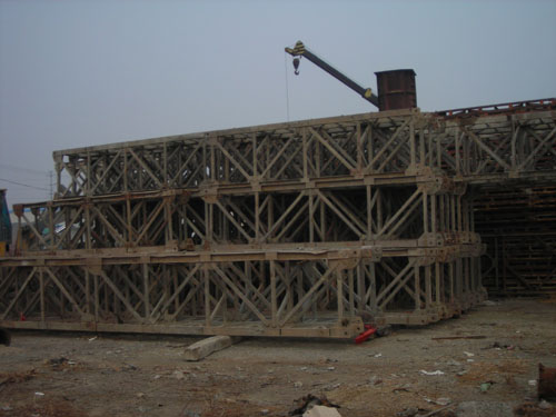 为改变桥梁机具存放场地脏、乱、差的现象,资产经营租赁分公司利用冬闲时间组织人员对模板等周转材料场地进行彻底整理,工作步骤按照场地规划、场地硬化、有关模板的防腐维护、物品的分类堆放进行。为此,资产经营租赁分公司安排8人,出动装载机、吊车、压路机、挖掘机各1台进行联合作业。全部整理工作计划在2011年1月26日前完成。下图为整理后的部分画面: