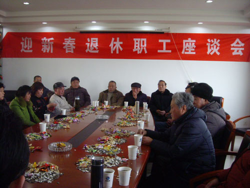春节即将来临,公司举办了退休职工“迎新春”座谈会。二零一一年一月十四日下午二点,会议里二十多名退休干部、职工准时聚齐,谈笑风生。气氛热烈,其乐融融,一派愉悦祥和。唐总、袁总、郝总等公司党政工领导对到来的退休干部、职工表示亲切的慰问。