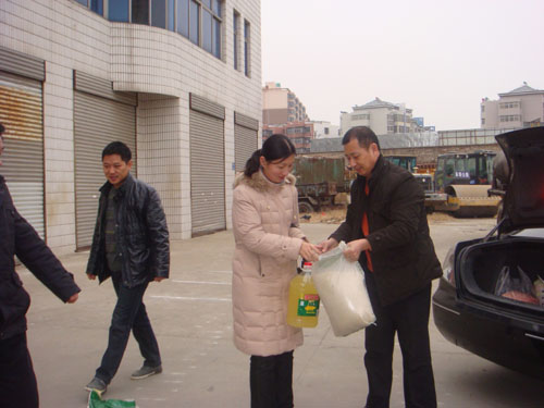 为使困难职工能过上一个欢乐、祥和的新春佳节, 2011年1月27日公司冯主席带领办公室人员前往五户困难、工亡家属进行了春节慰问。并为他们送去了米、油等慰问品和慰问金,同时带去了公司的关怀,并向他们致以新春的问候。