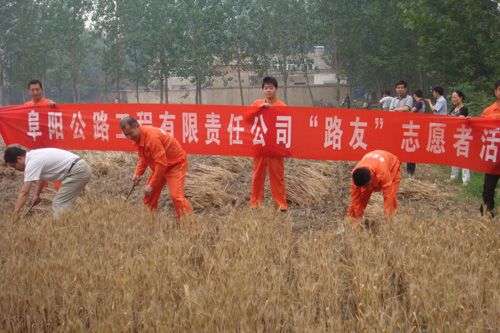 正值收麦大忙之际,市经济开发区文明办组织区文明单位帮扶社区困难家庭,阜阳公路工程有限责任公司“路友”志愿者积极参与,及时的伸出了援手。5月31日,志愿者们来到京九办事处唐营行政村谷子庄丁月华家,她丈夫残疾,孩子在浙江打工不能回来,家里收麦子劳动力少,公司“路友”志愿者冒着高温,汗流浃背的穿梭在田间地头,帮助困难家庭割麦、装车并将麦子送到他们家中,同时送去慰问金为困难家庭解决了麦收之忧,志愿者的行动得到了群众好评和赞扬。