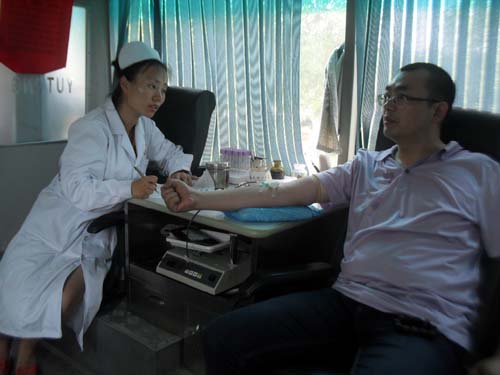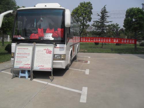 6月9日,阜阳市公路工程有限责任公司“路友”志愿者组织职工积极参加“捐一份热血、献一份爱心”的义务献血活动,在