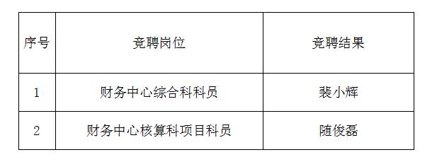 根据公司《关于集团公司财务中心增补管理人员内部竞聘的通知》(皖mansion88明升人[2017]98号)文件相关规定,经公司内部竞聘领导小组资审及面试,现将各岗位竞聘结果予以公示,如对本次竞聘工作有异议,请在公示期内与公司人力资源部联系。